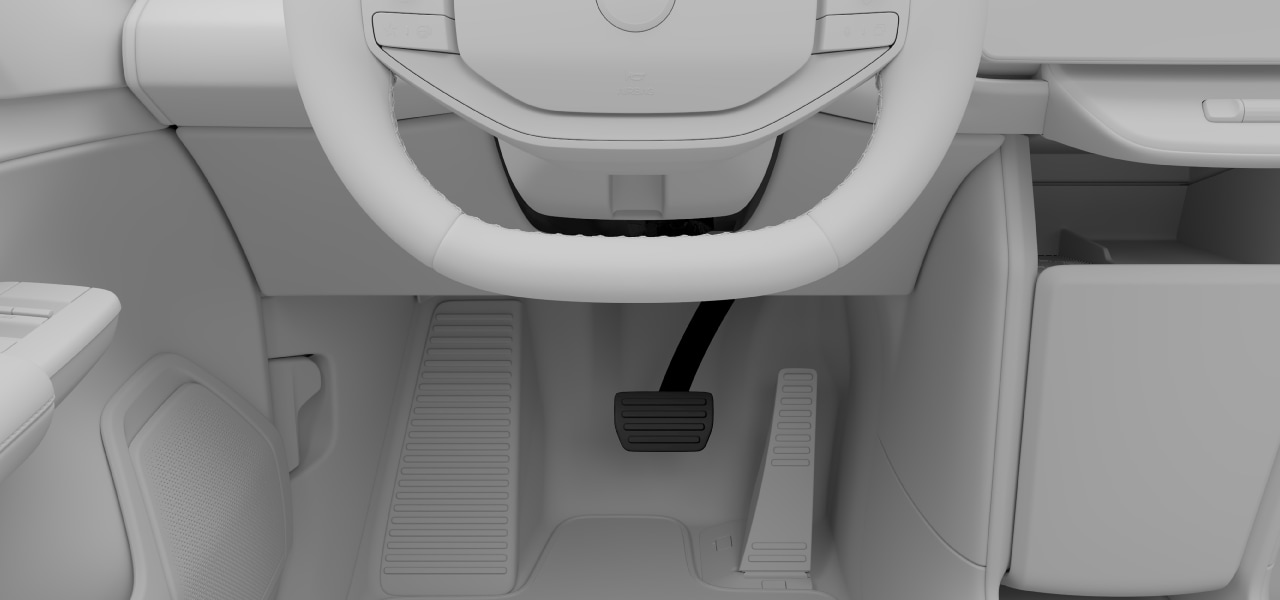 The foot brake is electronically controlled. As the braking force is transmitted electronically rather than physically, there are no natural reaction forces traveling from the brakes to the pedal.
